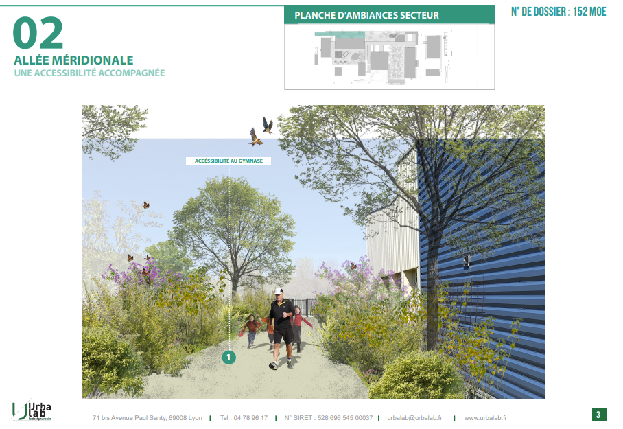 Allée méridionale : liaison protégée entre le collège et les installations sportives.